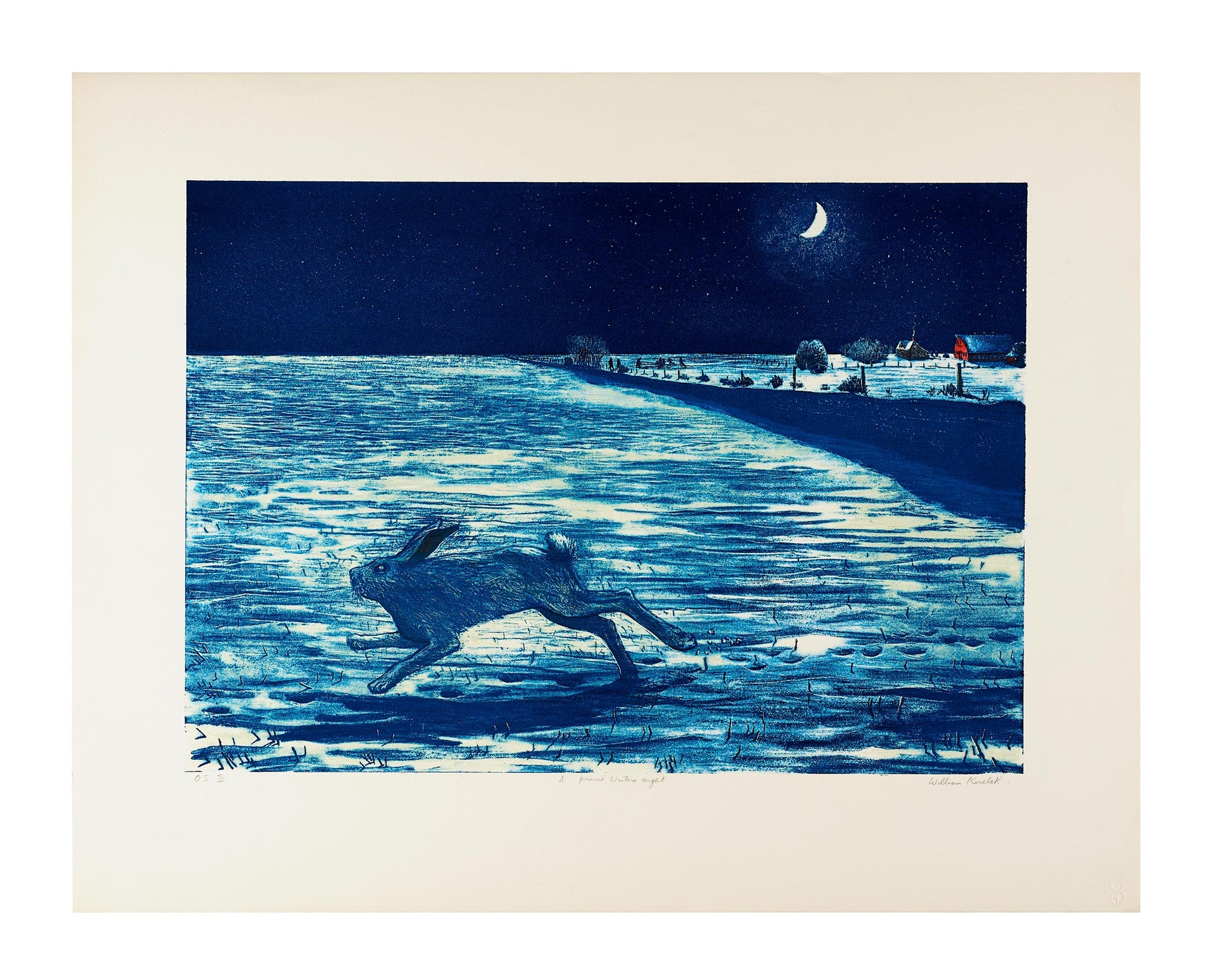 This colour lithograph, A Prairie Winter's Night, is one of ten prints that were produced with William Kurelek at Open Studio between 1973 and 1976.